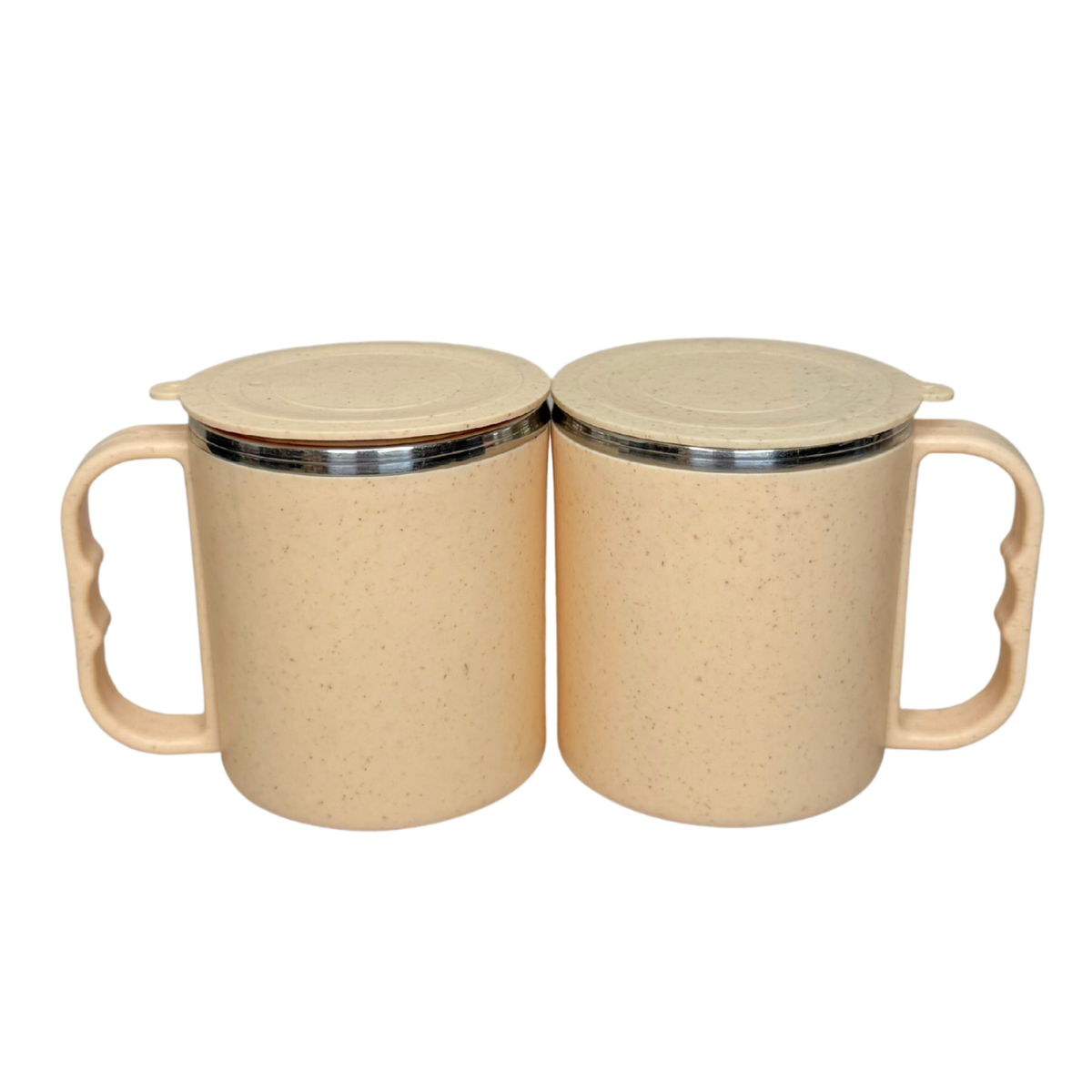 2 Premium Steel Mugs – Minimalist beige design with a comfortable handle, perfect for coffee, tea, or any beverage. Keeping drinks Hot & Cold for long hours