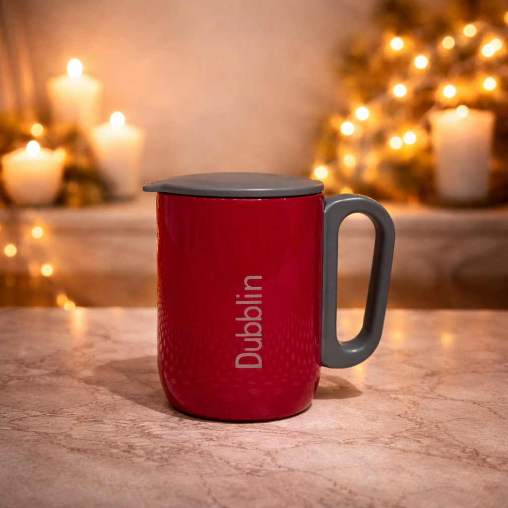 Reusable stainless steel mug with lid, decorative rose, teddy, and candle create long-lasting memories beyond Valentine’s Day.